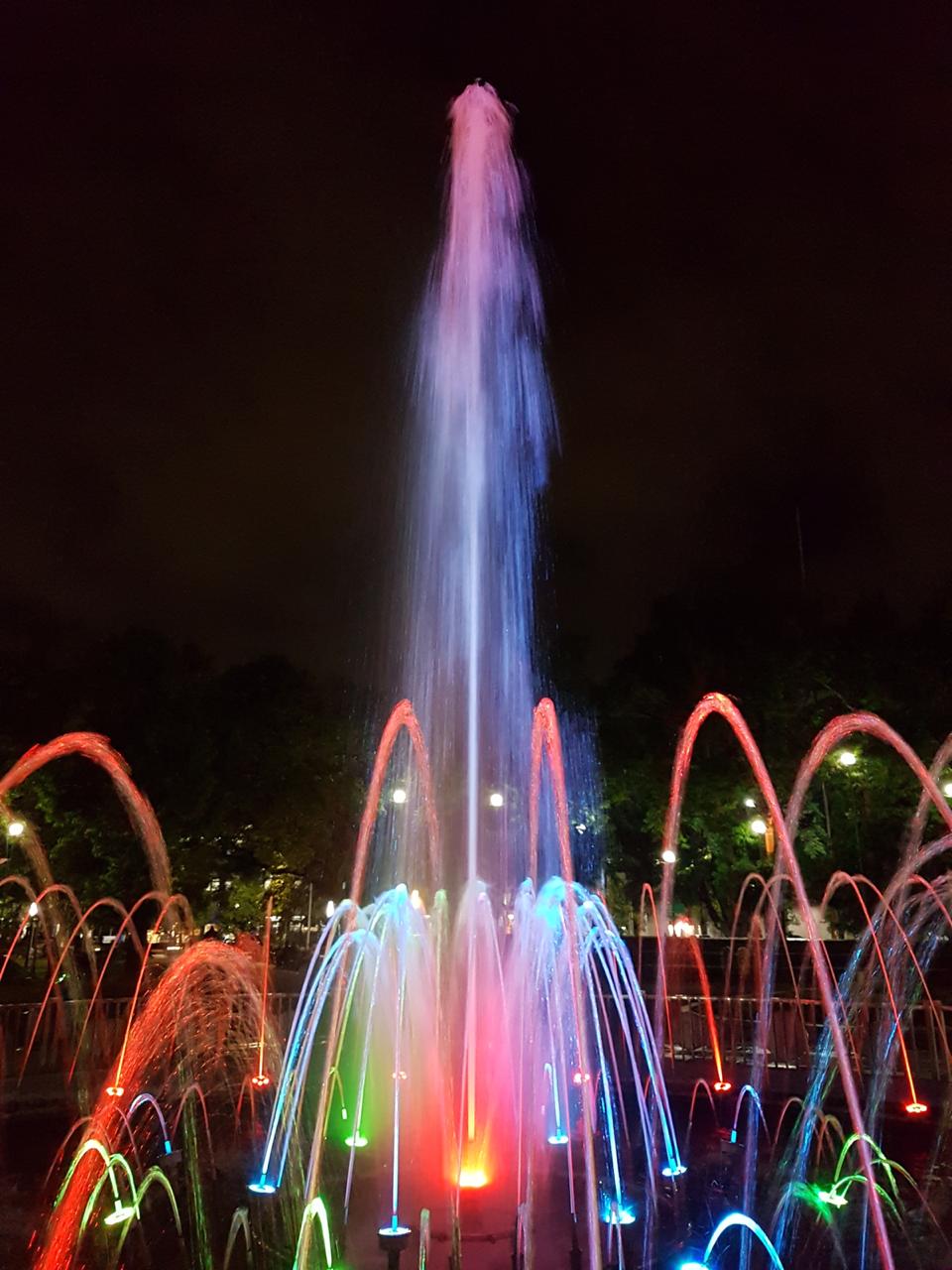 Air mancur Alun-Alun Merdeka yang kini nampak begitu indah dengan sinar warna-warni. (Disperkim)